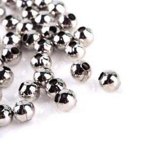 Kovový korálek. Průměr otvoru 1,2 mm. Platinová barva. Materiál: železo.