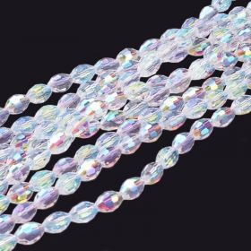 Skleněné broušené ovály 8x6 mm, 70 ks, čirá s AB pokovem