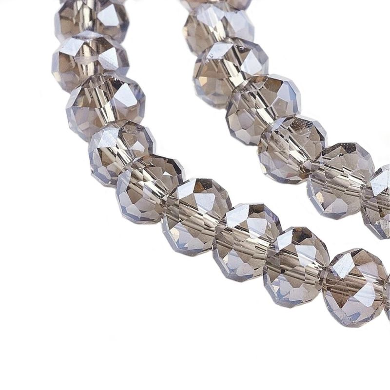 Broušené korálky na šňůře.Velikost 6x4 mm, barva šedá, povrchová úprava listr.